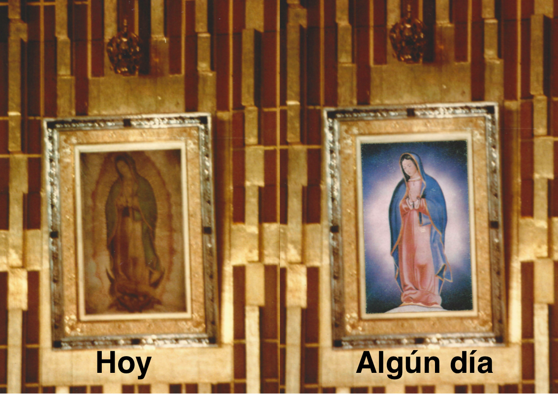 También presento los otros retoques y añadidos que se le hicieron a la Imagen en los 4 siglos pasados. Y en contraposición muestro la Imagen de la virgen como debió haberse aparecido en 1531 antes de que cayera en manos de los funestos retocadores.